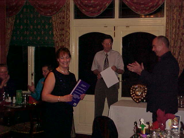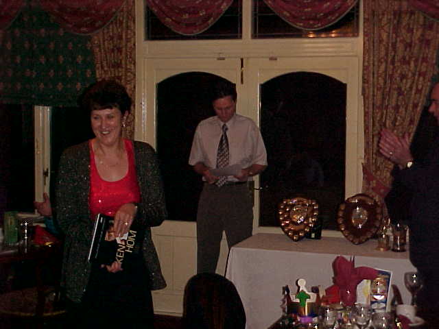 MONICA'S ABLE ASSISTANT KAREN BEING THANKED FOR HER WORK DURING THE SEASON.