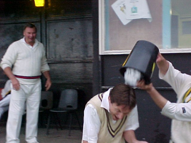 THE NOW TRADITIONAL DRENCHING OF THE SKIPPER, AS A TOKEN OF THANKS FOR HIS SUPERB LEADERSHIP OVER THE SEASON.